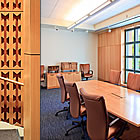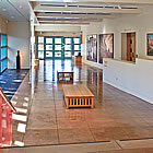 Exhibit areas provide for visiting exhibits as well as permanent displays. There is an open video space amidst the lower level exhibits as well as a high tech auditorium, suitable for viewing films or hosting panel discussions. The main lobby area, with its long window wall looking out on the adjacent Palace of the Governors, is a natural gathering space. It culminates at an atrium to the second floor and the monumental stair connecting all three levels. The second floor also offers a central gathering area, making the museum of place for present day community as well as the telling of history.